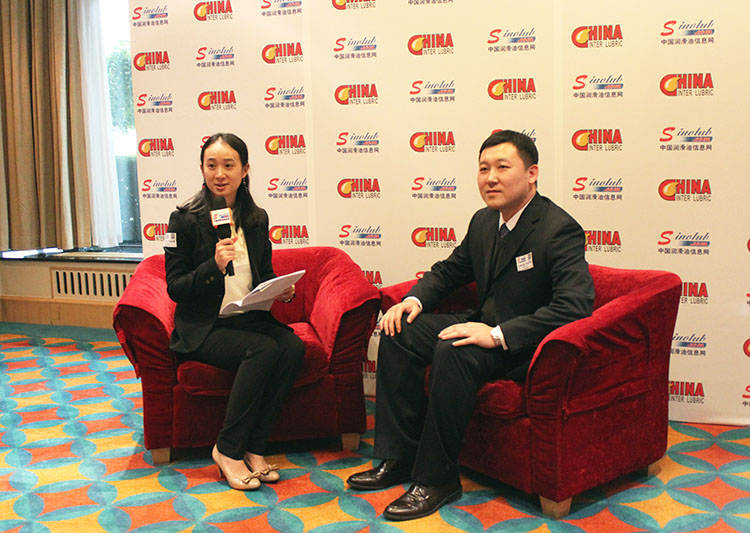 營銷公司總經理孫毅(右一)接受中國潤滑油信息網的采訪
