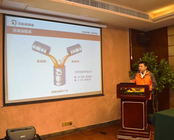 ? ? ? ? 在司能產(chǎn)品線及油品知識介紹方面,司能溧陽應(yīng)用研究所主任吳浩明指出,司能品牌的原料全部來來自國際知名品牌的基礎(chǔ)油和添加劑,每道工序都經(jīng)過嚴(yán)苛的檢驗流程,所以大家可以放心大膽的使用。并對明年優(yōu)化后的產(chǎn)品線進行著重介紹。