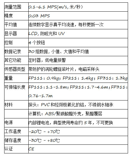 進口直讀式流速儀FP211技術參數(shù):