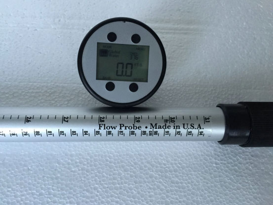 流量探頭手柄可以伸縮,長度范圍FP111:1.1-1.8m;FP211:1.7-4.6m;FP311:0.76-1.7m。手柄由陽極氧化鋁構成,重量輕,壽命長。4.6m長的FP211流速探頭,可以從路面測量下水道流速,從低的橋上測量溪流流速。收縮長度0.76m的FP311流速探頭,便于帶到偏遠的流速監(jiān)測區(qū)域。一個0.9米(FP311為0.5m)帶聚酯覆層的手柄測量尺(0.01英尺和厘米刻度)附在水流速探頭手柄的下部,用于即時的水深度測量和渦輪定位。